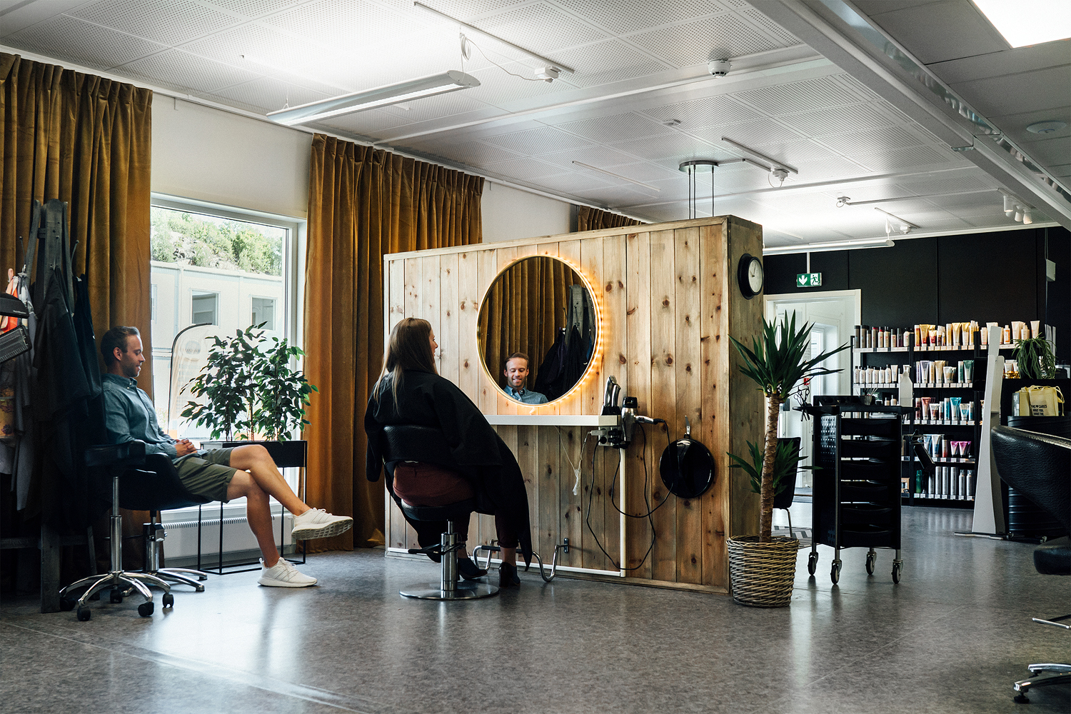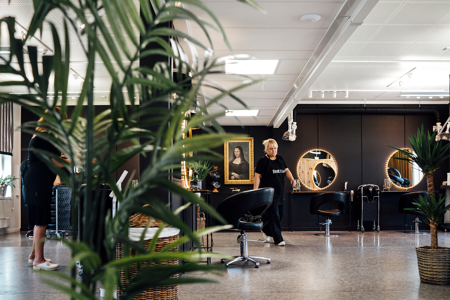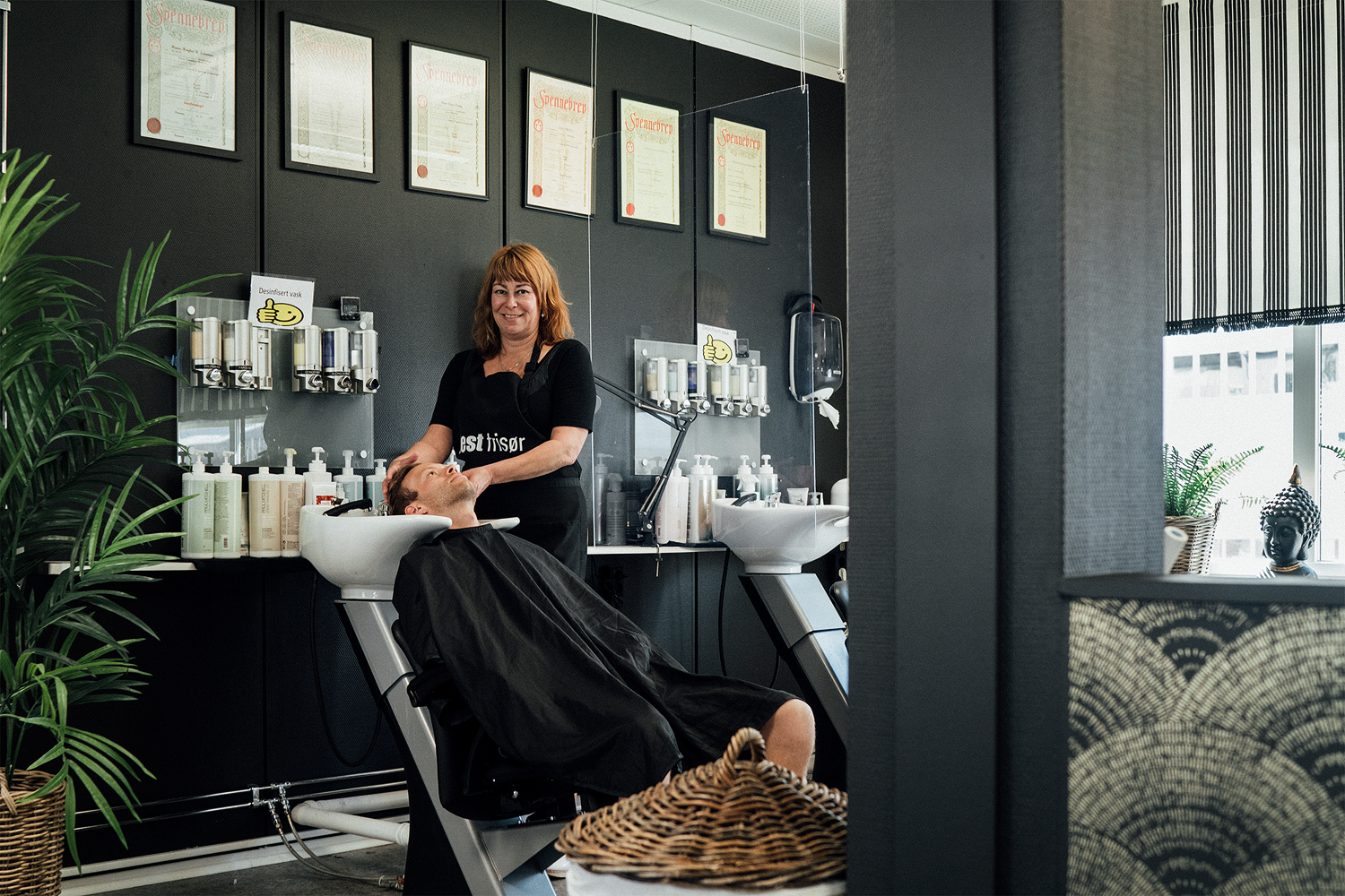 For Best Frisør var det viktig at de fikk sette sitt preg på lokalene de skulle inn i, med romslige koronavennlige lokaler tilbyr de nå fullverdig frisørbehandlinger i det midlertidige sentrumet.