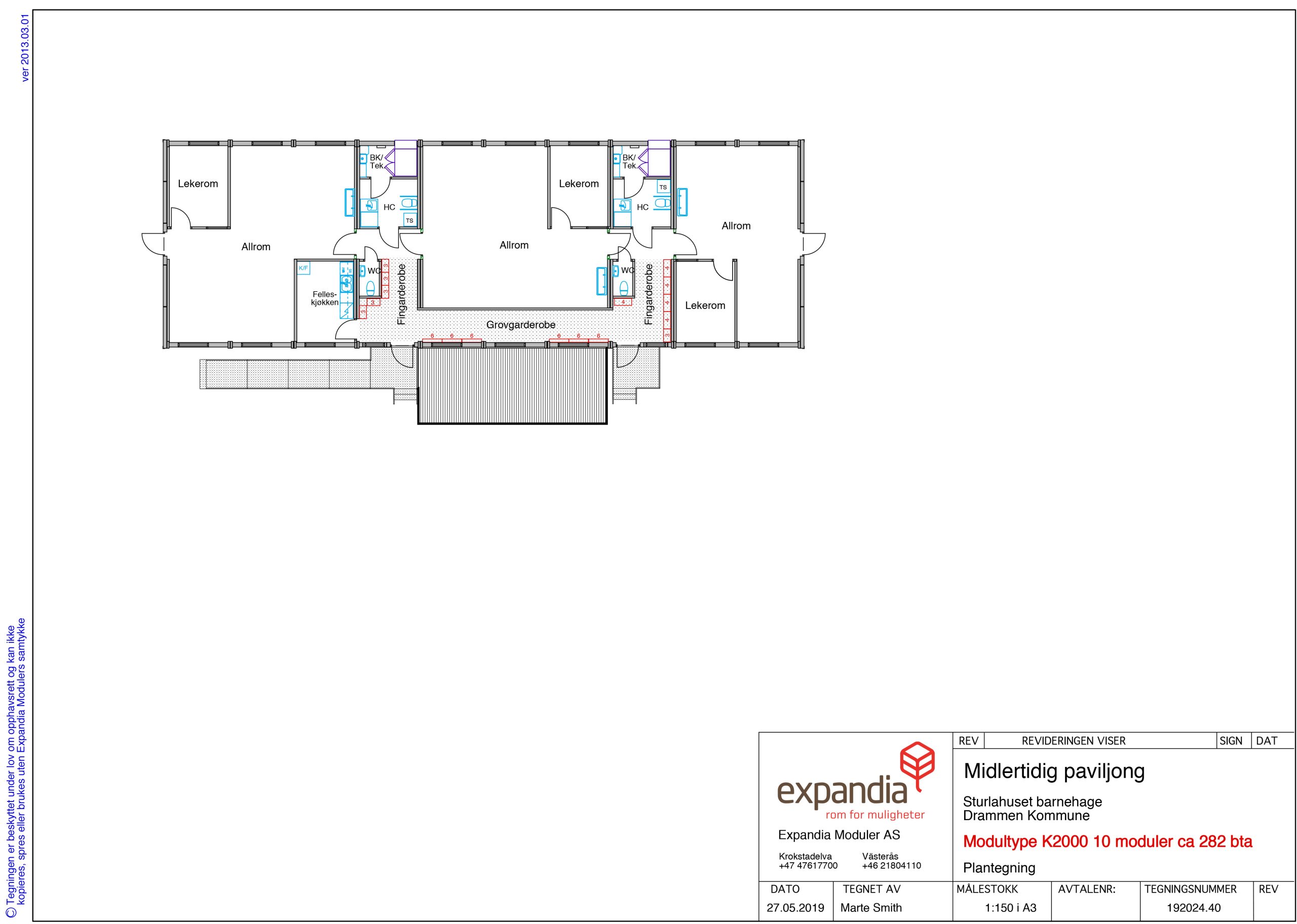 Dette resulterte i 10 moduler fra Expandia Moduler som skulle huse småbarnsavdelingen i den midlertidige perioden. Storbarnsavdelingen ble midlertidig lokalisert i Sturlahuset, rett overfor småbarnspaviljongen. Sturlahuset byr på flotte uteområder, på lik linje med Spiralen, og relokaliseringen gikk derfor ikke på bekostning av barnas naturopplevelser.