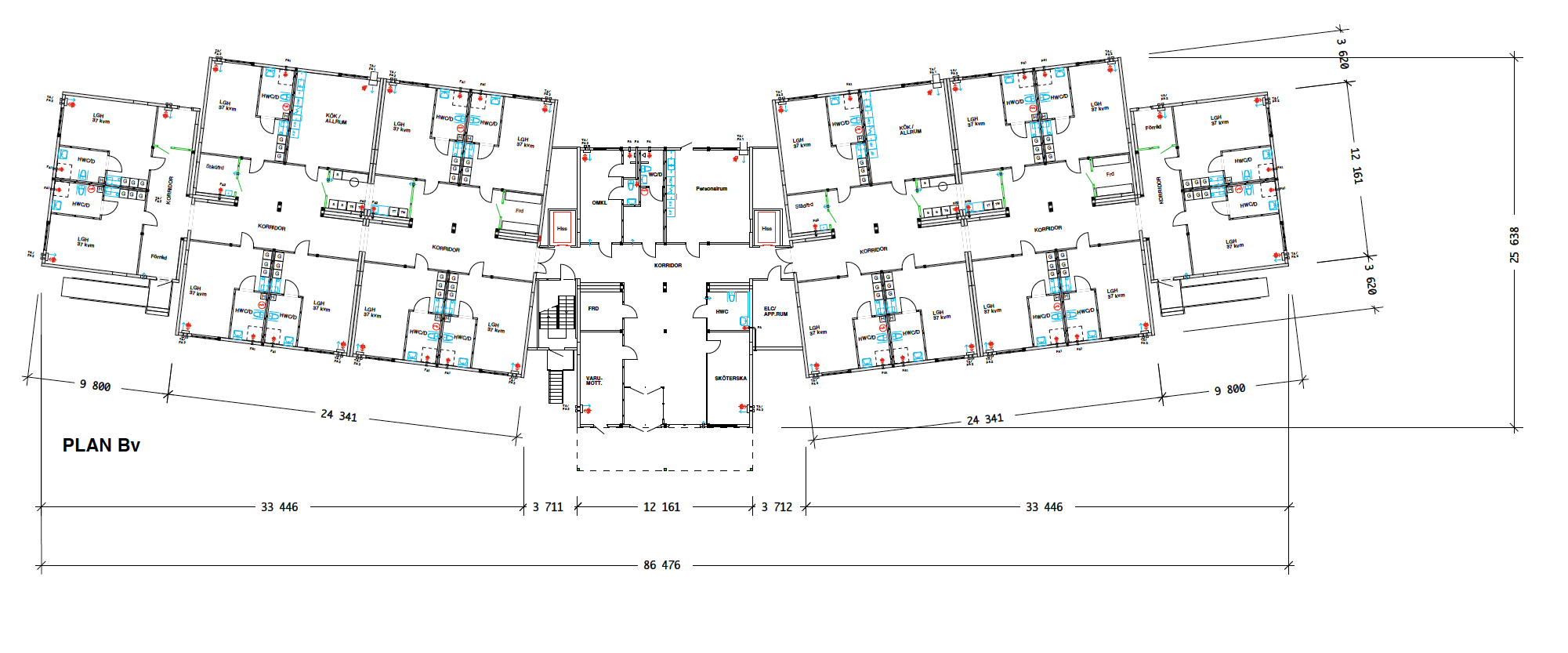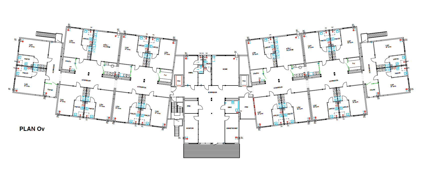 96 st. B2000-moduler från Expandia bildade 34 st. lägenheter i två våningar med generösa gemensamhetsutrymmen och separat personaldel.